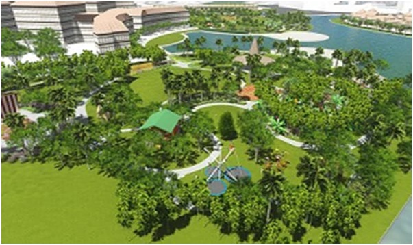 Công viên trung tâm rộng lớn với không gian xanh cực kỳ rộng lớn. Tỷ lệ phủ xanh cao, giúp không khí trong lành.