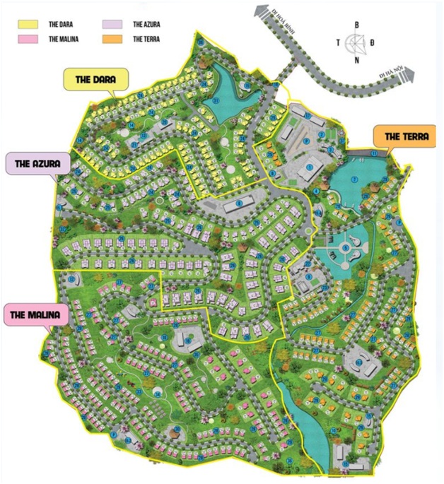 - Quy mô: 66 ha gồm 4 phân khu: DARA, AZURA, TERRA, MALINA