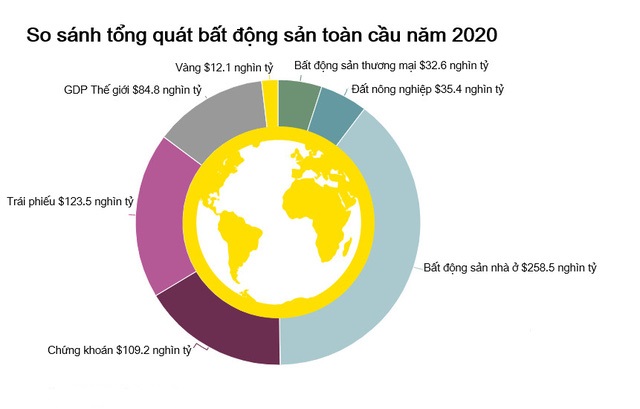 Sự tăng trưởng giá trị bất động sản toàn cầu đạt mức 5% vào năm 2020, thấp hơn tổng giá trị của các khoản trái phiếu (tăng 17%), cổ phiếu (tăng 20%) hoặc vàng (tăng 29%).