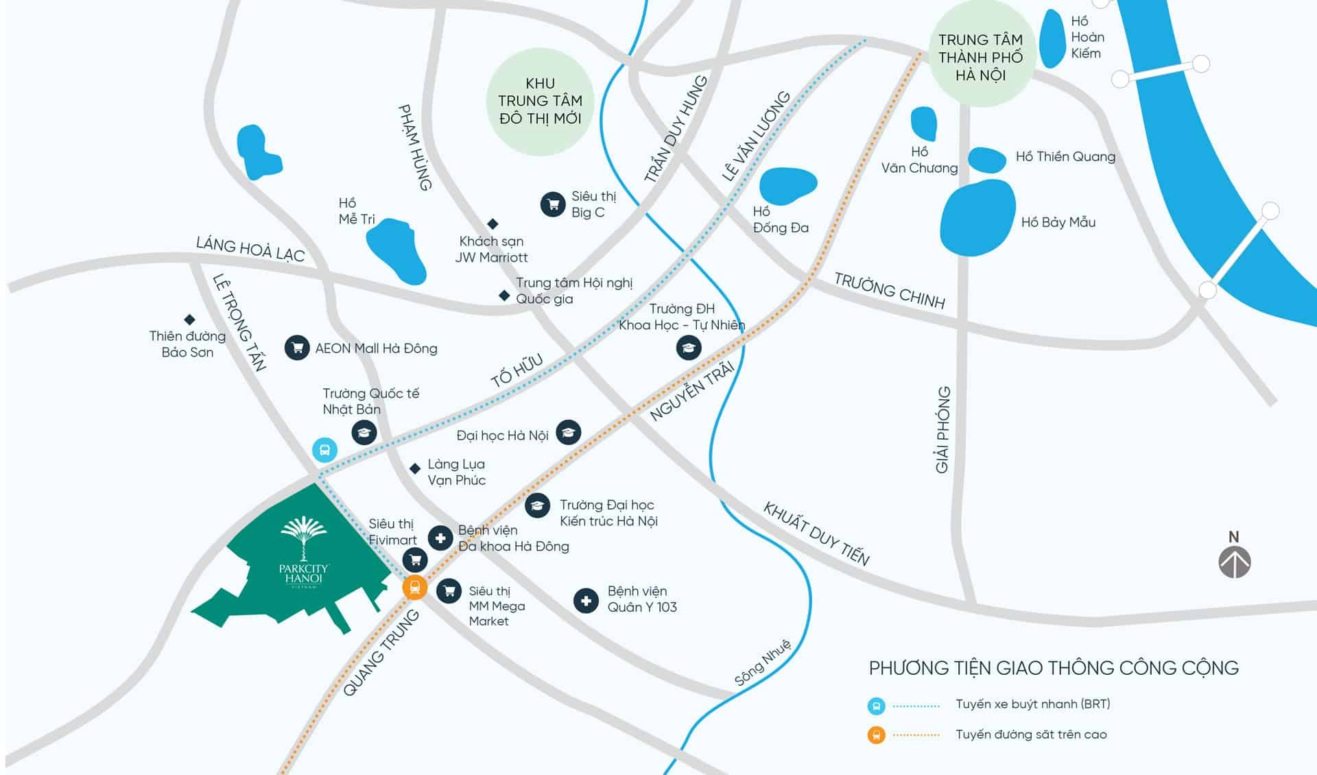 Khu đô thi Park City nằm ở vị trí thuận lợi tại điểm cắt của trục đường Lê Văn Lương kéo dài và đường Lê Trọng Tấn, quận Hà Đông, cửa ngõ phía Tây Nam thủ đô Hà Nội. Đây là một trong những khu vực có tốc độ phát triển cực nhanh tại Hà Nội hiện nay. Từ vị trí dự án cách Trung Tâm Hội Nghị Quốc Gia 5km, cách trục Nguyễn Trãi – Quang Trung khoảng 6km.